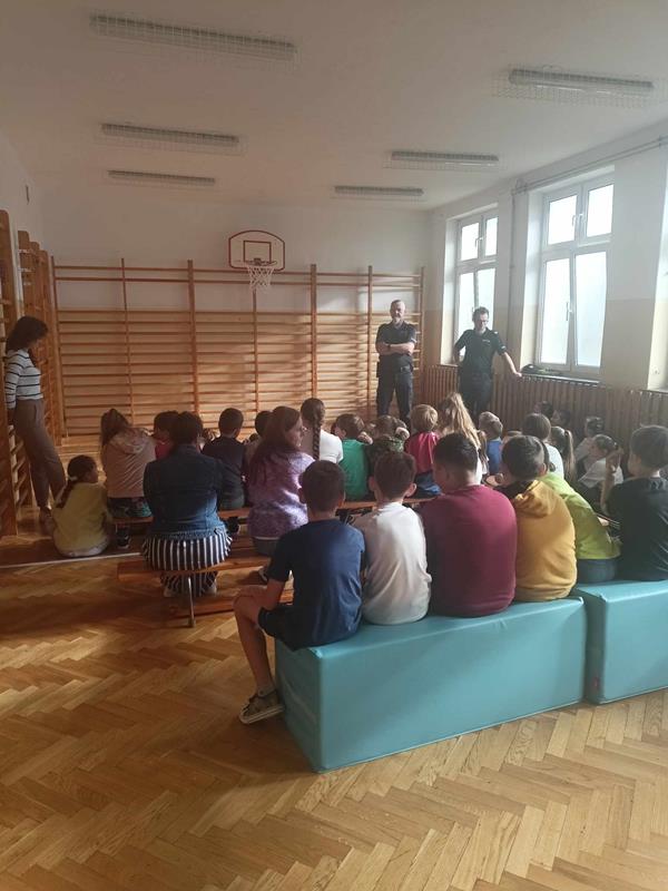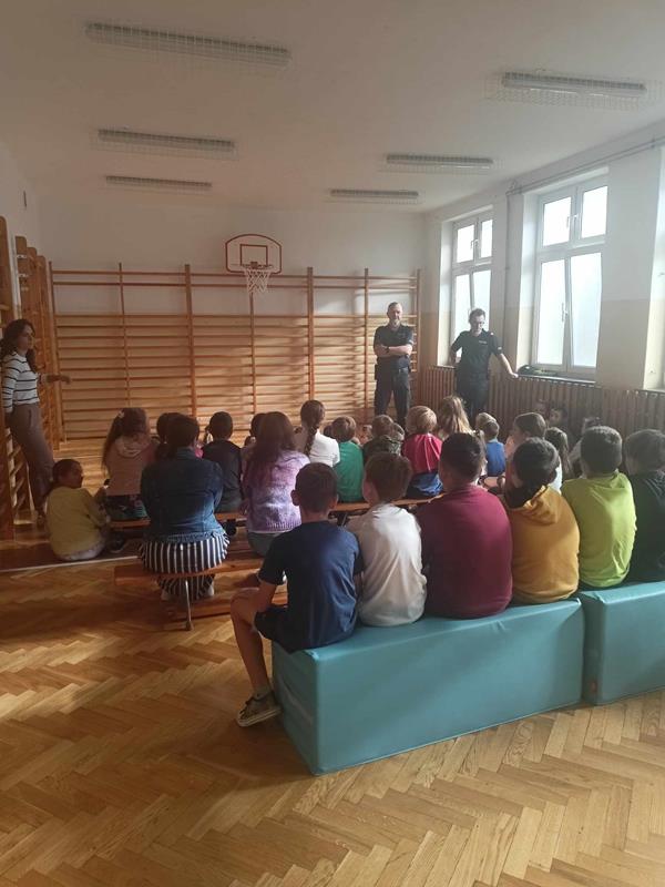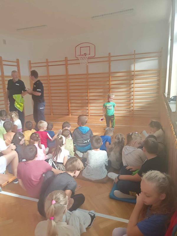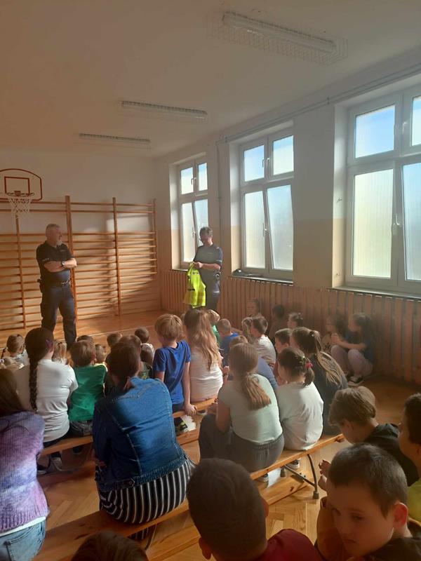 23 września 2024 r. w ramach przypomnienia zasad bezpieczeństwa w szkole i poza nią, odbyło się spotkanie uczniów klas 0-4 z policjantami. Rozmowy z dziećmi dotyczyły podstawowych zasad bezpieczeństwa w ruchu drogowym. Panowie policjanci zwrócili uwagę na ważną rolę znaków odblaskowych. Przypomnieli także zasadę, jak należy zachować się w kontakcie z obcym osobami. Na zakończenie uczniowie mieli możliwość zadawania pytań oraz dzielenia się swoimi spostrzeżeniami.