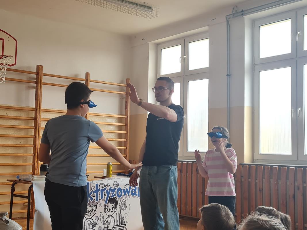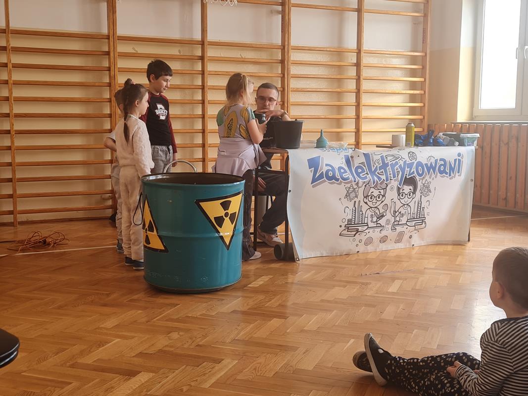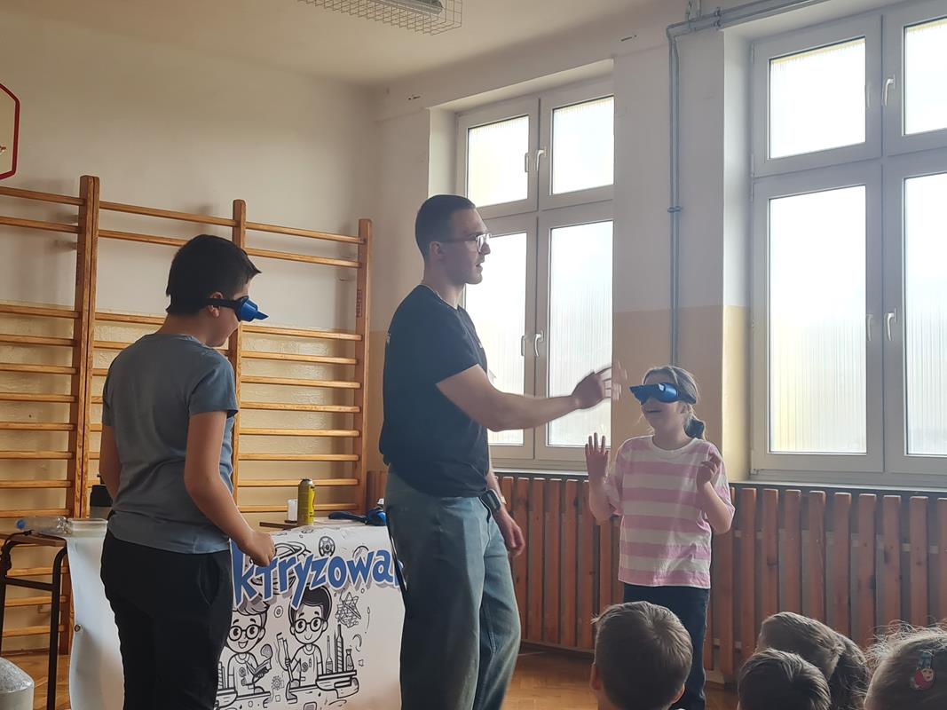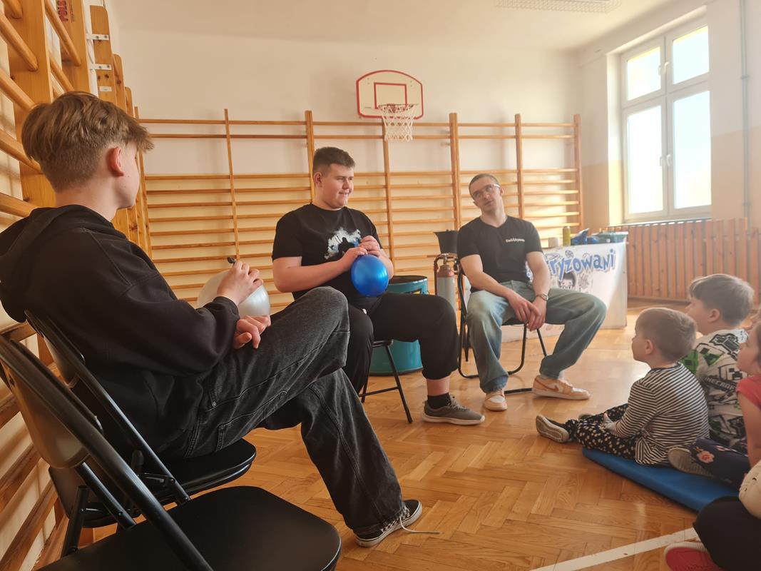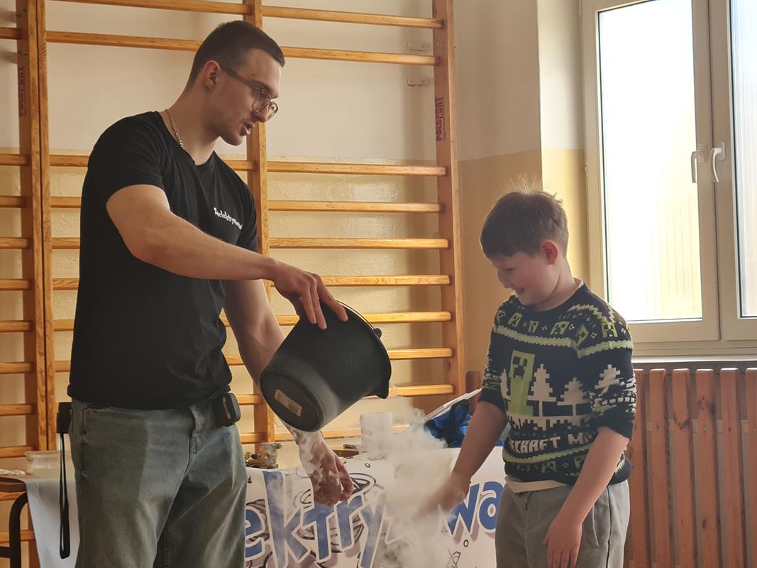 Tematem zajęć były właściwości fizyczno-chemiczne wybranych gazów. Prezentujący pokazał wiele ciekawych doświadczeń z wodorem, helem, azotem, tlenem, parą wodną. Dzieci bardzo aktywnie brały udział w pokazie chemiczno – fizycznych doświadczeń. Mogły one bezpośrednio zaobserwować m.in. zjawisko wrzenia ciekłego azotu, zmianę wysokości dźwięku w helu. Przedstawiona prezentacja spodobała się wszystkim uczestnikom, dzięki czemu uczniowie poszerzyli swoją wiedzę z zakresu chemii, fizyki. Świetnie się bawili, miło i pożytecznie spędzili czas.