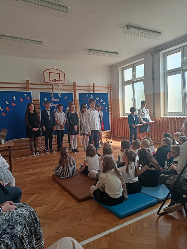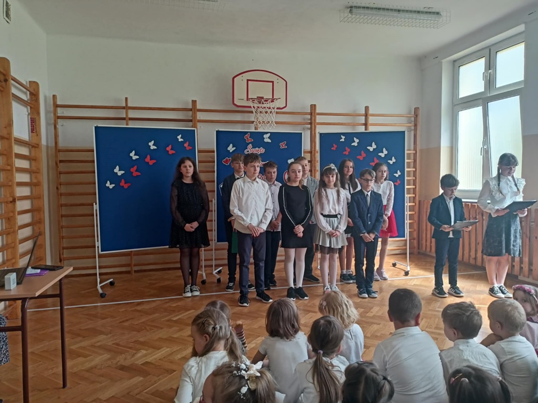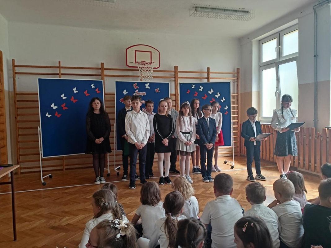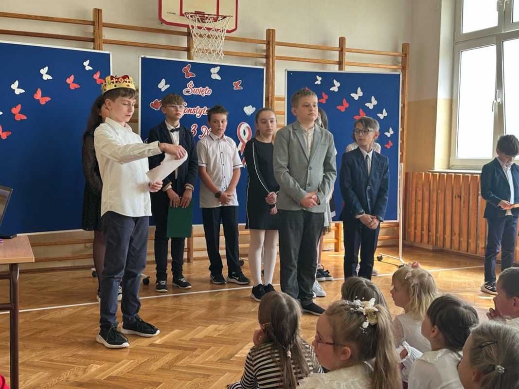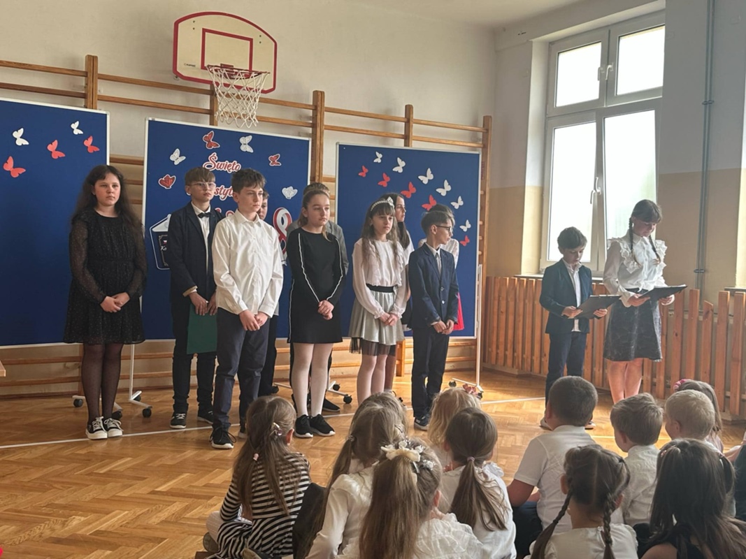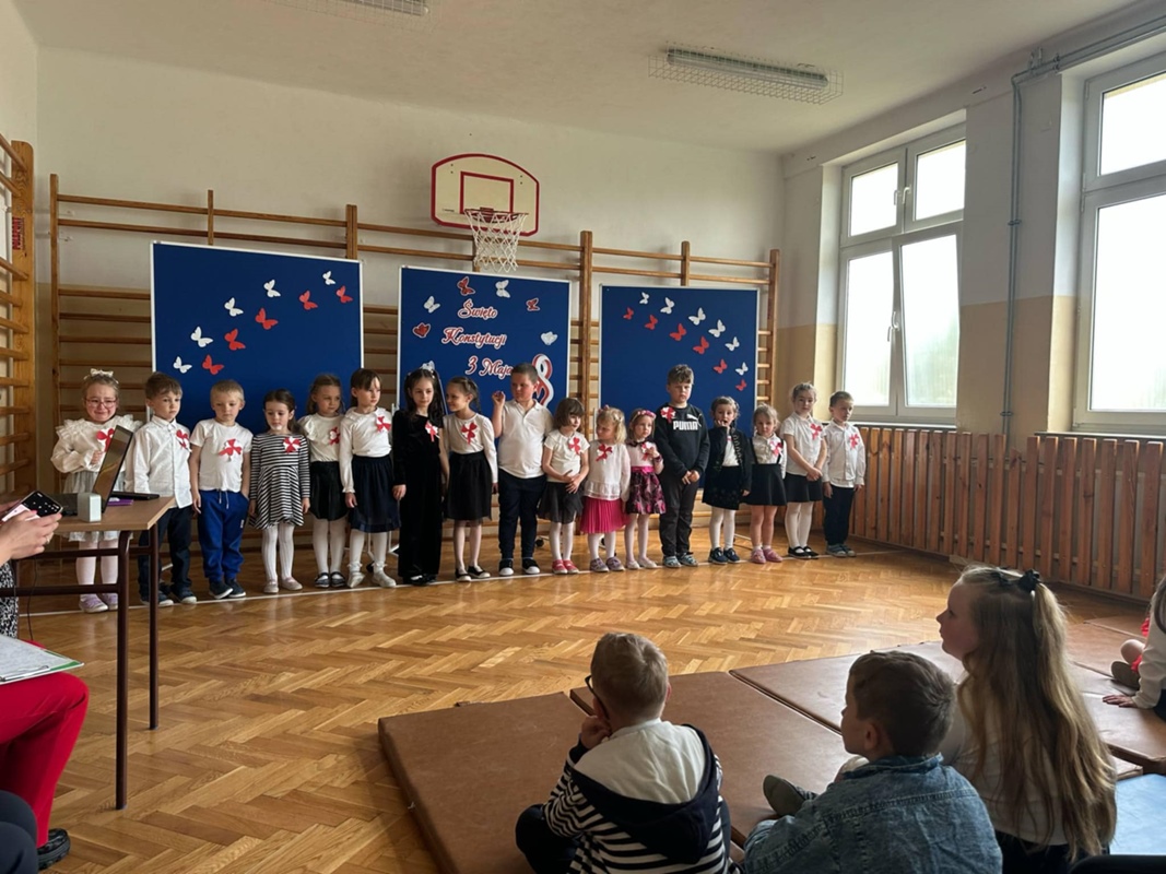 Uroczystość rozpoczęła się od wprowadzenia pocztu sztandarowego i odśpiewania hymnu narodowego. Dzieci z Oddziału Przedszkolnego zaśpiewały piosenkę „Pamięć w nas”. Następnie uczniowie klasy 5 przedstawili montaż słowno-muzyczny, który przeniósł zebranych w czasy obrad Sejmu Czteroletniego. W programie pojawiły się recytacje patriotycznych wierszy, pieśni historyczne oraz scenki ukazujące ducha epoki i znaczenie podjętych reform. Akademia zakończyła się wspólnym odśpiewaniem pieśni „Rota”.