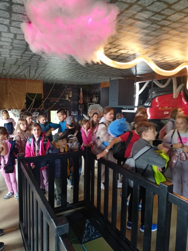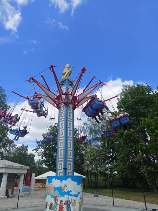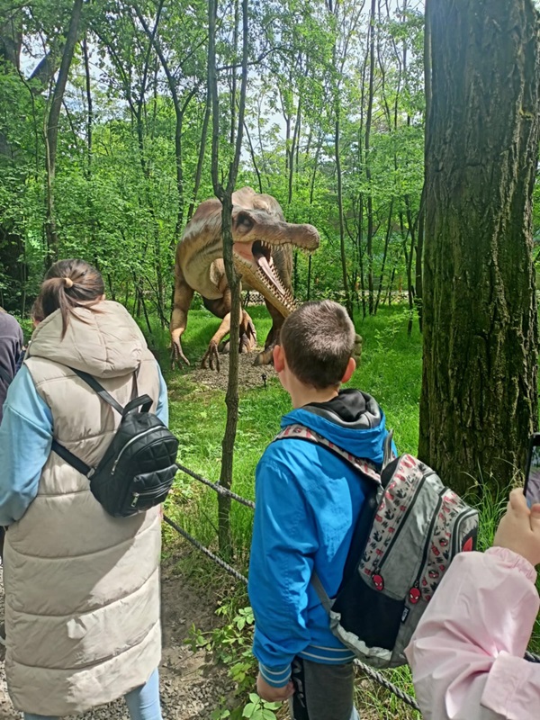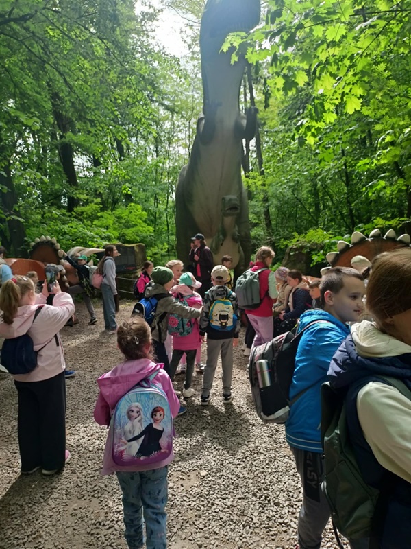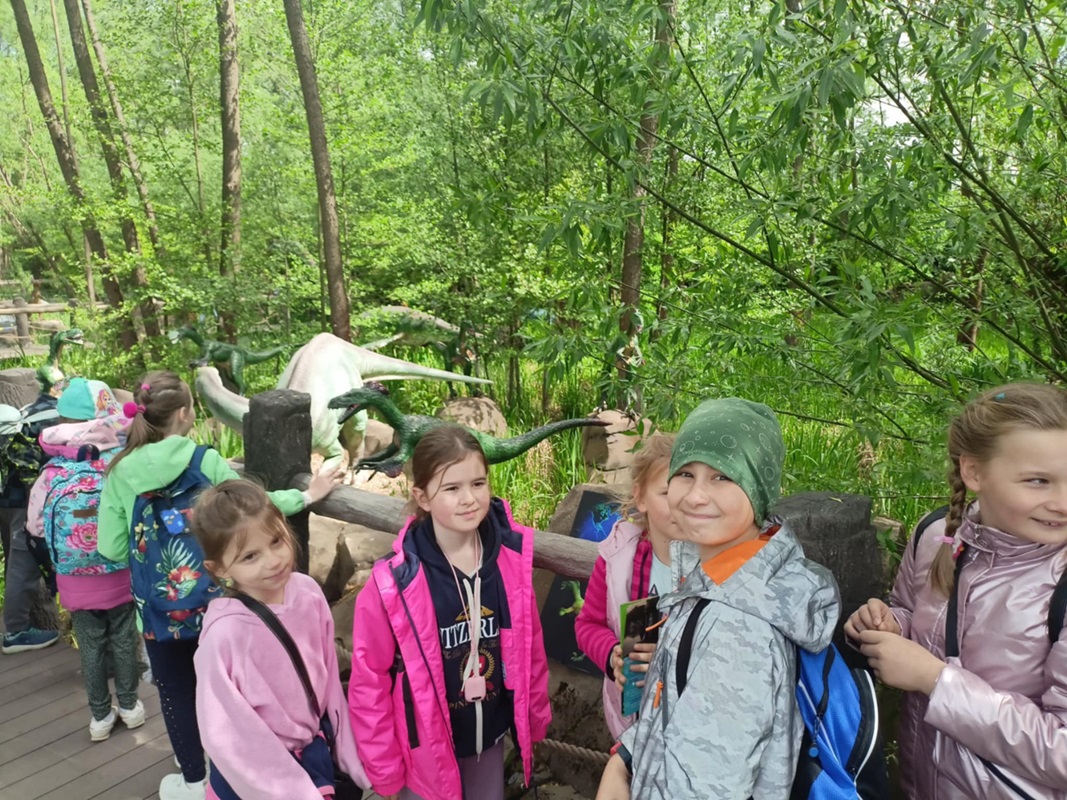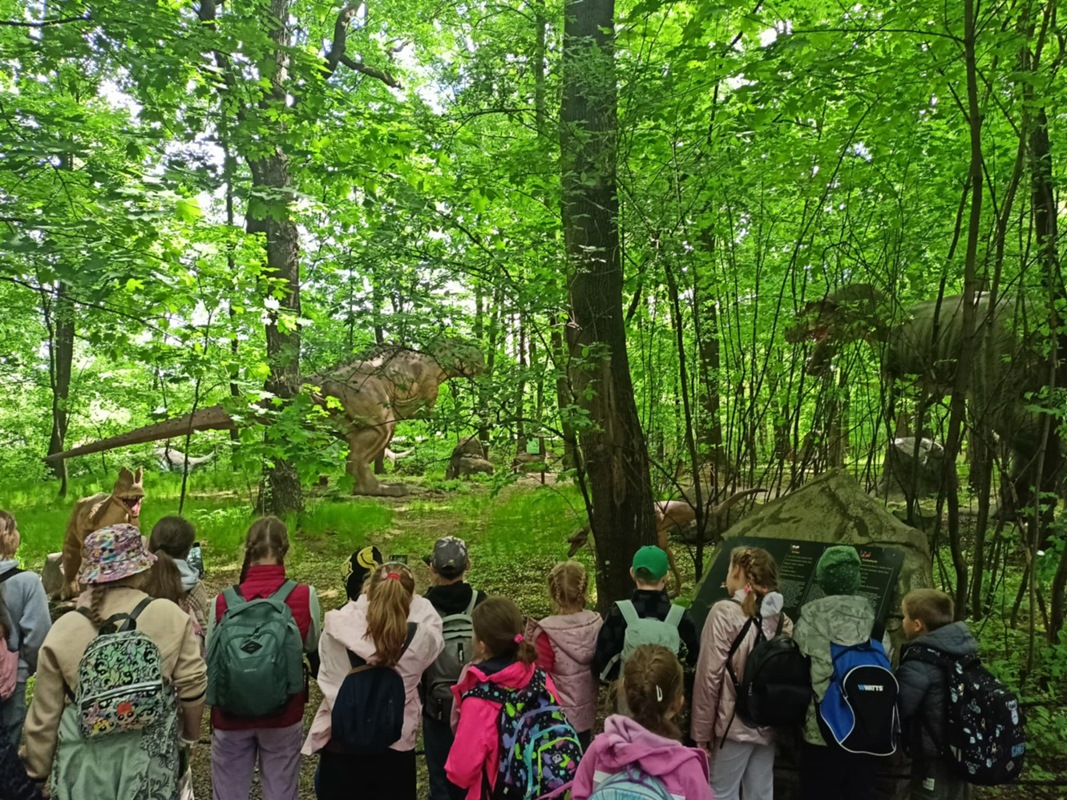 Na sam początek udaliśmy się do Parku Ruchomych Dinozaurów. Spacerując pośród drzew zobaczyliśmy przeszło 100 różnych dinozaurów, większość z nich to eksponaty ożywione. Zachwyciły nas ogromne roślinożerne Zauropody, przerażający T-Rex. Większość z nich porusza się i wydaje dźwięki, dlatego przechadzka po ścieżce edukacyjnej dostarczyła wielu ekscytujących chwil. Następnie odwiedziliśmy Park Mitologii, który ulokowany jest w dużej części na wodzie. To jedyne takie miejsce w Polsce, gdzie można z bliska poznać greckich bogów, herosów, bohaterów i mityczne stworzenia. Ciekawą atrakcją szczególnie dla miłośników przyrody, był Park Owadów. Jest to wyjątkowe miejsce, w którym zobaczyli owady ludzkich rozmiarów. Spacerując po ścieżce edukacyjnej, mieliśmy możliwość spotkać 16 gigantycznych eksponatów, min.: konik polny, biedronka, mrówka, jelonek rogacz, larwa motyla, modliszka, skorpion, stonka, żuk rohatyniec, mucha, skorek. Nie zabrakło zabawy w Luna Parku. To miejsce, w którym zmęczeni przygodą poznawania i nauki mali odkrywcy skorzystali z możliwości relaksu i dobrej zabawy. Gdzie min. brali udział w seansie kina 5D Extreme, symulatora 3D Bonanza, karuzeli „słonie”, diabelskiego młyna, karuzeli wiedeńskiej i łańcuchowej itp. Na sam koniec o całkowity zawrót głowy przyprawił wszystkich pobyt w domku do góry nogami.