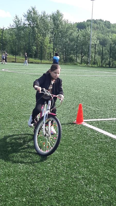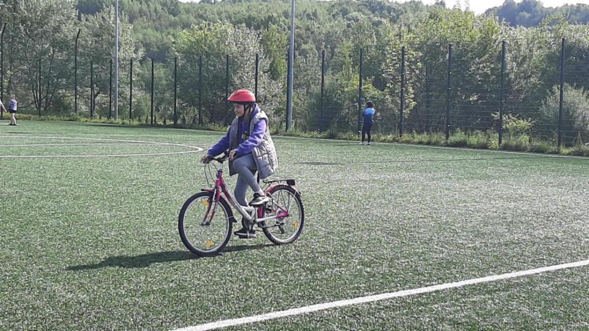 Część praktyczna odbyła się na szkolnym boisku. Uczniowie prezentowali swoje umiejętności jazdy na rowerze, wykonując manewry takie jak skręty, zatrzymywanie się, omijanie przeszkód czy jazda z zachowaniem równowagi.