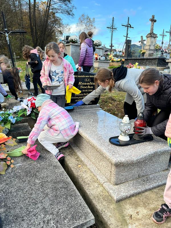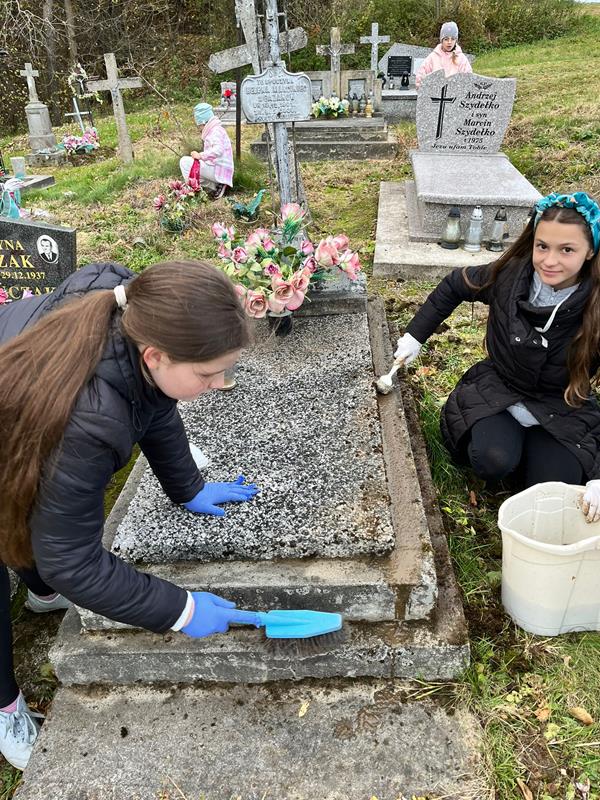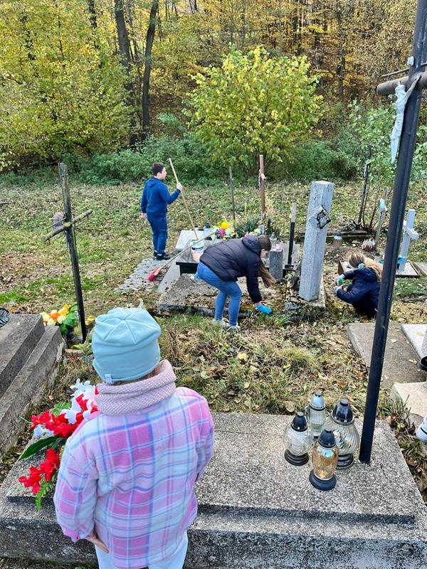 W poniedziałek, 27 października, z okazji zbliżających się Uroczystości Wszystkich Świętych i Dnia Zadusznego, członkowie szkolnego koła Caritas wzięli udział w akcji sprzątania grobów na cmentarzu parafialnym. Uczniowie z zaangażowaniem porządkowali zaniedbane mogiły, zapalali znicze i pamiętali o modlitwie za zmarłych. Po zakończonej pracy odbyło się ognisko integracyjne, podczas którego uczestnicy mogli odpocząć, porozmawiać i wspólnie cieszyć się atmosferą współpracy i życzliwości. To był dzień pełen refleksji, wspólnoty i dobrych uczynków.
